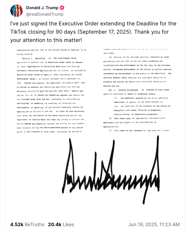Последняя задержка ознаменовала третью отсрочку, что дало Tiktok еще 90 дней, чтобы найти покупателя или быть запрещенным в США, согласно сообщениям онлайн.