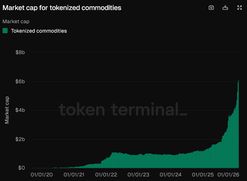 В начале года рынок токенизированных товаров оценивался чуть более чем в 4 миллиарда долларов, а это означает, что с 1 января к стоимости рынка было добавлено около 2 миллиардов долларов, согласно данным аналитической платформы криптовалюты Token Terminal.