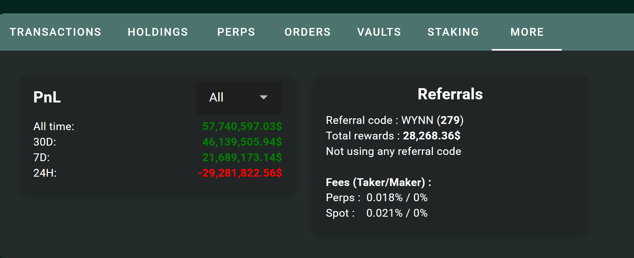 Данные Hypurrscan показывают, что Wynn понесла более 29 миллионов долларов в течение всего за последний день. Тем не менее, он по-прежнему вырос более чем за 57 миллионов долларов за все время, и только за последний месяц за последний месяц.