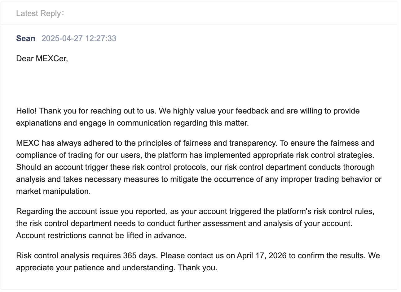 Тем не менее, ограничения счетов «навязываются строго потому, что они вызвали наши правила контроля рисков, а не из-за прибыльности»,-сказал представитель MEXC MEXC, добавив 12-месячный период обзора обмена «исключительно к учетам, связанным с координированными нарушениями, учетными записями высокого риска или рисками, связанных с соответствием и не влияет на все пользователи».