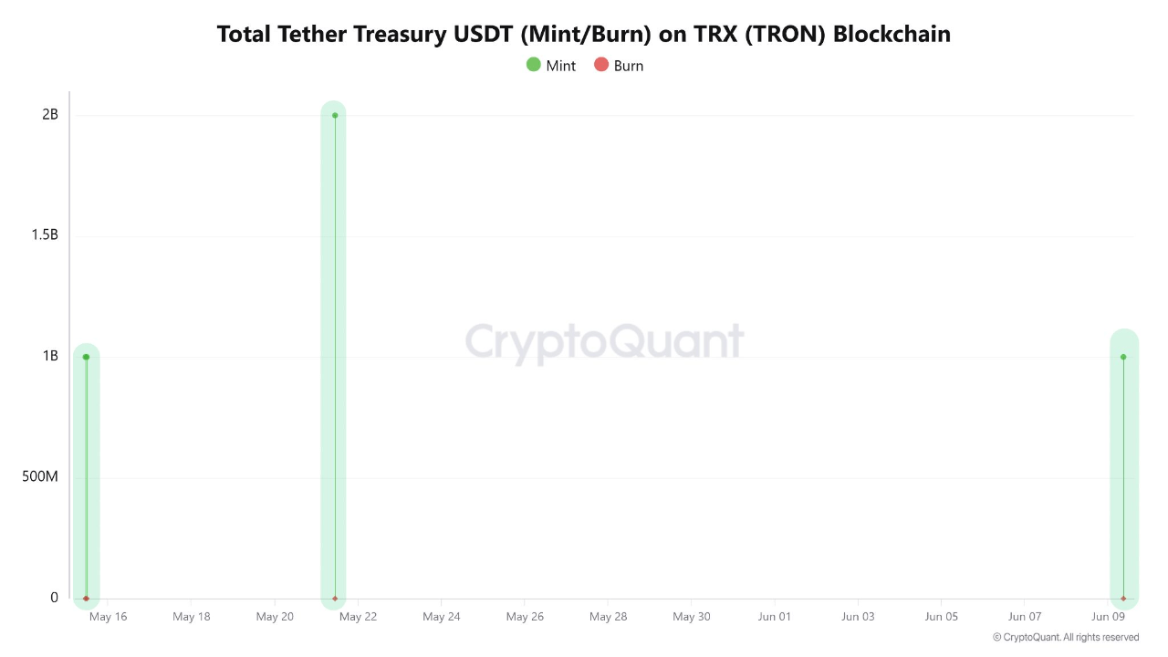 Согласно отчету Taha под названием «Tether Corniaury Mints 1 миллиард долларов США на Tron до того, как Биткоин достиг 110 000 долларов», The Deat Sulfeaury недавно выпустило 1 миллиард новых токенов USDT на блокчейне Tron 9 июня 2025 года.