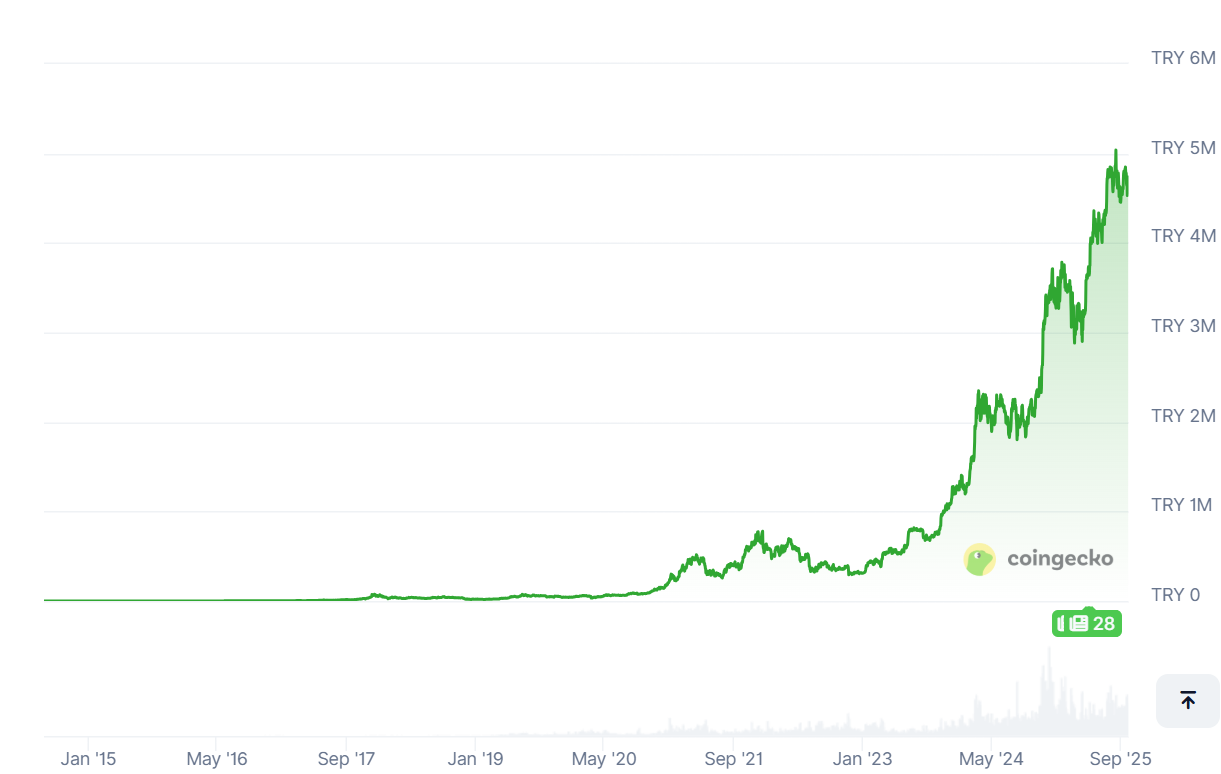 Чтобы проиллюстрировать масштаб упадка Лиры: в 2020 году один биткоин стоил около 100 000 турецких лиров. Сегодня эта цифра превышает 4,6 миллиона LIRA, отражая оценку цен Биткоин и крутой амортизация Лиры.