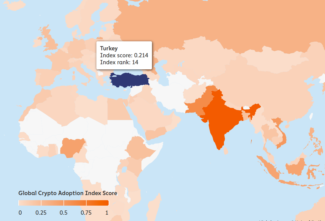 Согласно последнему индексу институциональной криптовалют в стране, внедрение в стране, согласно последнему индексу внедрения криптовалюты, выпущенного в сентябре, поддержал применение криптовалюты в Турции неуклонно поднимается в поддержку роста централизованных розничных платформ и растущего присутствия институциональных услуг по криптовалют.