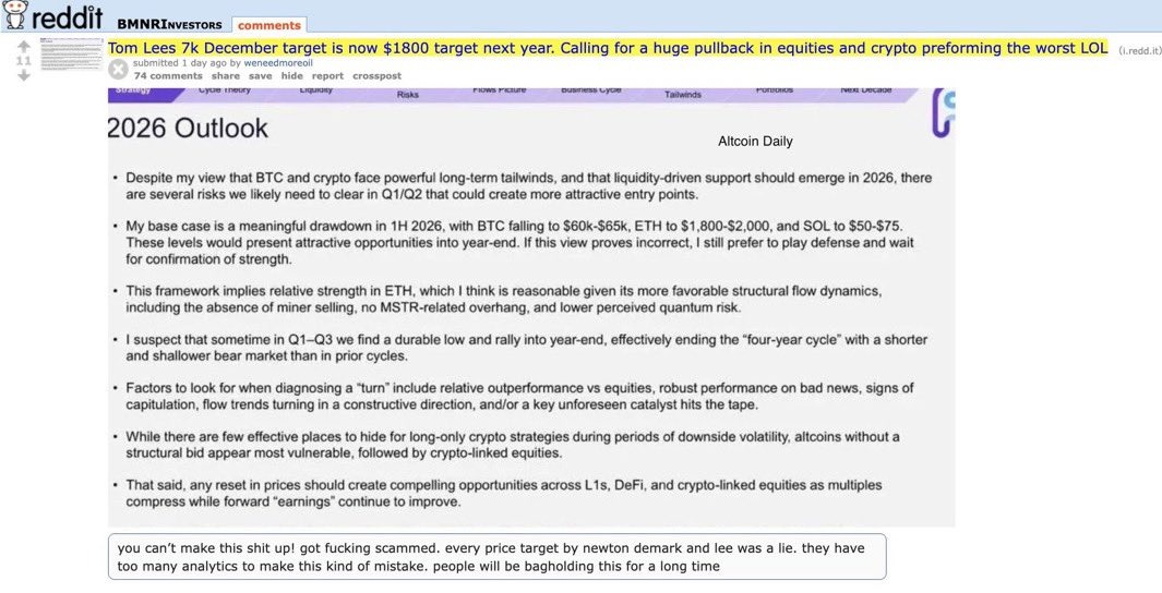 Несмотря на опасения, текущее снижение эфира соответствует анализу Тома Ли, председателя BitMine и соучредителя Fundstrat Global Advisors.