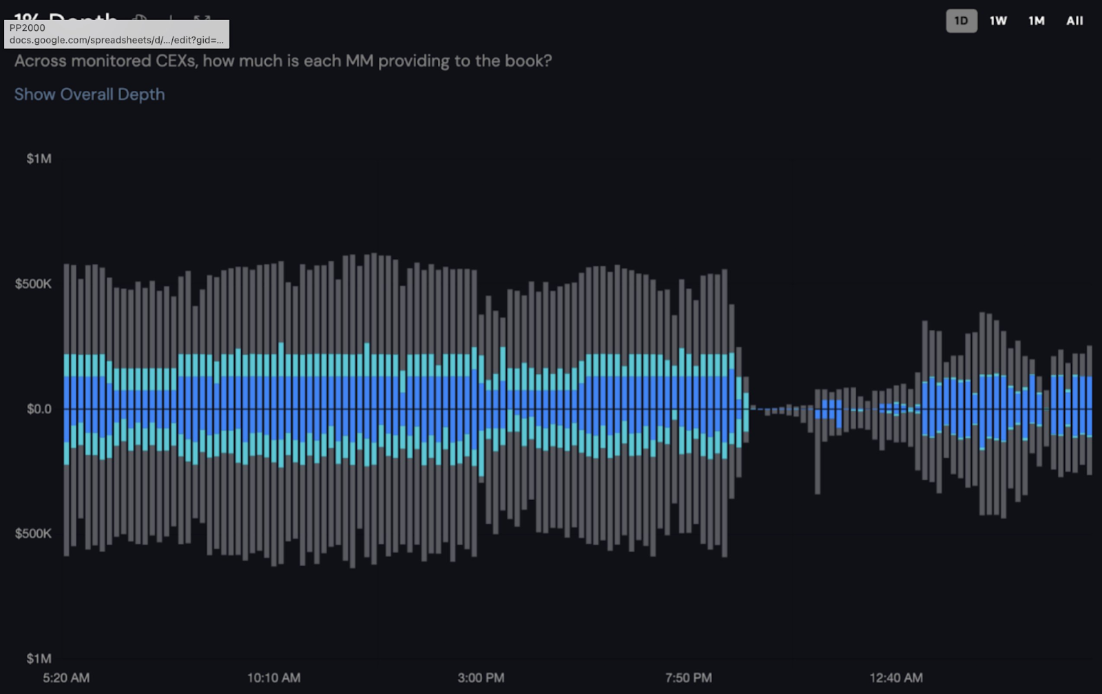 “Коли ціна маркера розбився, обидва MMS витягнули все з книг. Через 1,5 години Синій повернув своїх ботів і повернувся до забезпечення подібної кількості ліквідності, як і раніше. Тим часом бірюза знаходиться в книгах, але ледве взагалі”, – сказав Coinwatch у неділі X Post.