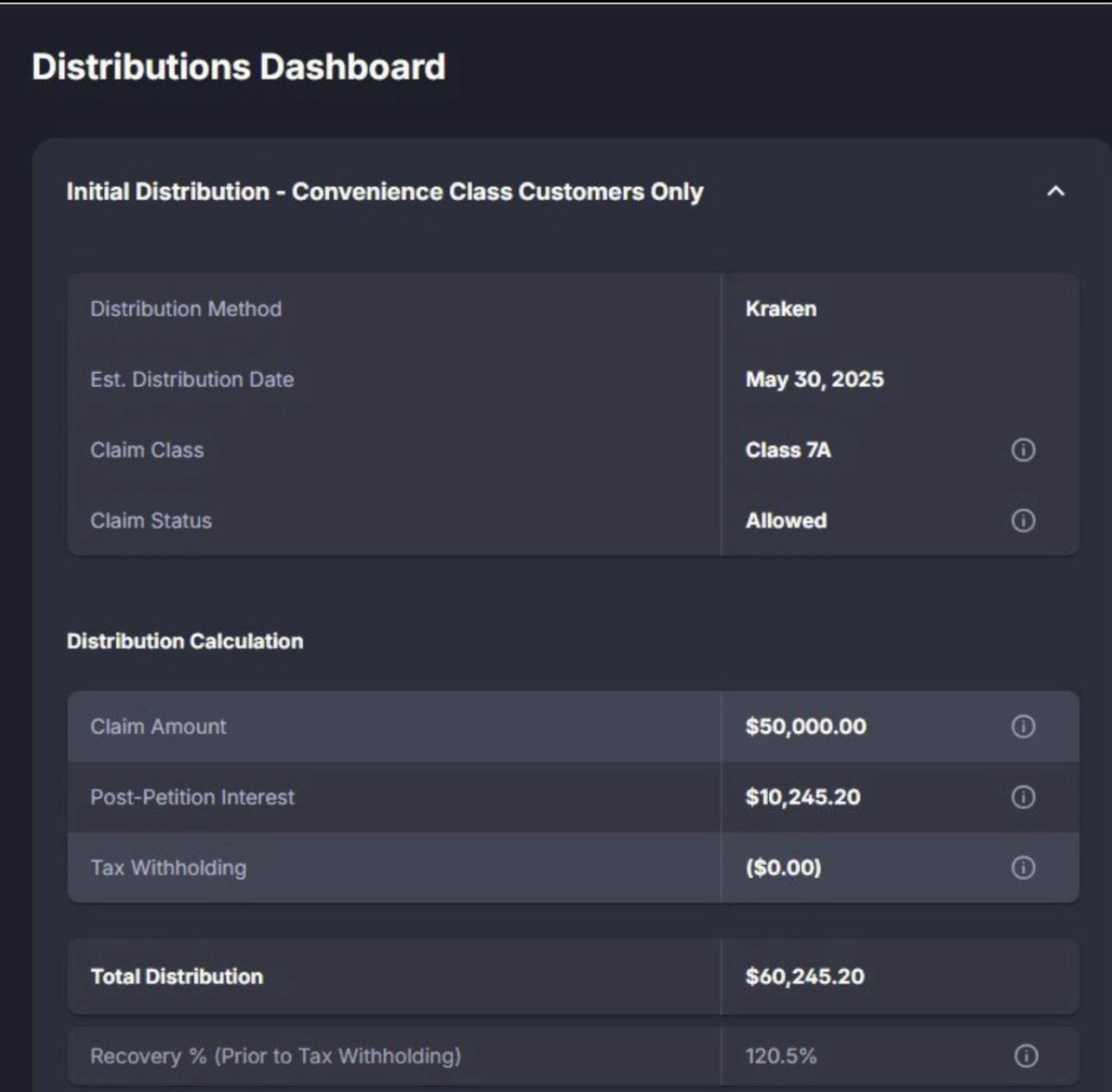 30 травня трест відновлення FTX розпочав свій другий раунд платежів, погашаючи цифрові активи на суму понад 5 мільярдів доларів до придатних кредиторів, які виконали вимоги до розподілу.