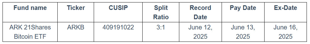 ARK 21Shares Bitcoin ETF (ARKB) зазнає розділу акцій 3-за-1 пізніше цього місяця, оскільки емітент фонду, 21Shares, каже, що прагне збільшити свою апеляцію до роздрібних інвесторів.