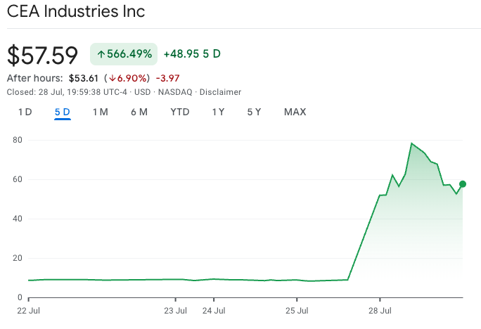 Акції в канадській компанії Vape Company CEA Industries Inc. (VAPE) в понеділок зросли майже на 550% після розкриття планів стати найбільшою компанією з казначейства BNB в США.
