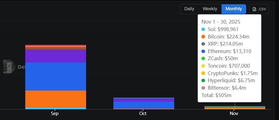 У листопаді надходження ще більше скоротилися. Станом на понеділок надходження DAT цього місяця сягнули понад 500 мільйонів доларів США, що на 75% менше порівняно з жовтнем.