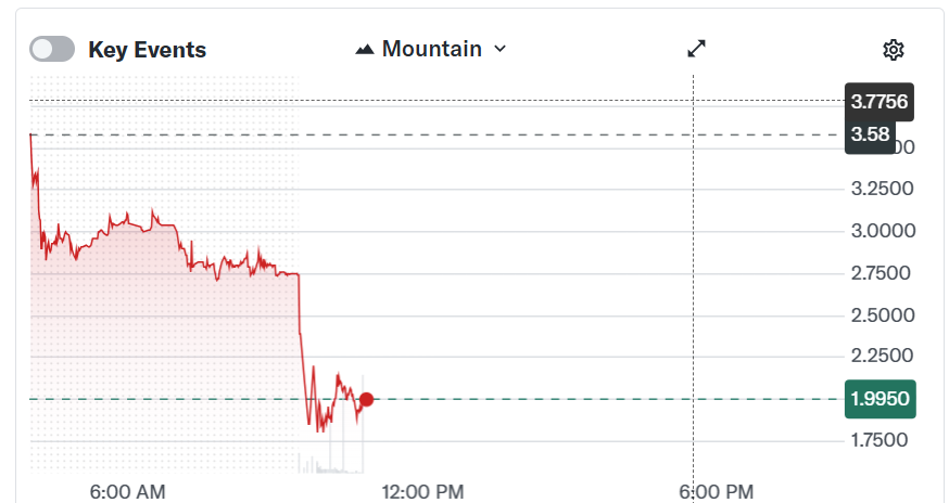 Зараз ціна акцій впала приблизно на 78% порівняно з максимумом після лістингу в 9,31 долара 9 вересня, що підкреслює широке розкручування в секторі цифрових активів і його вплив на пов’язані акції.