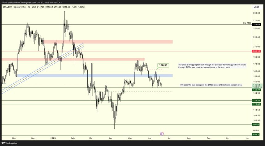 Efloud зазначає, що цей сценарій не обов’язково означає, що SOL повинен знизитися до цих рівнів, але поточні ринкові умови – з боку біткойна – непомітно структури пари. Якщо Сол може рішуче пробитися вище стійкості до 168 доларів, нова нога вгору може бути спровокована, при цьому 230 доларів потенційно діють як наступна зона опору.