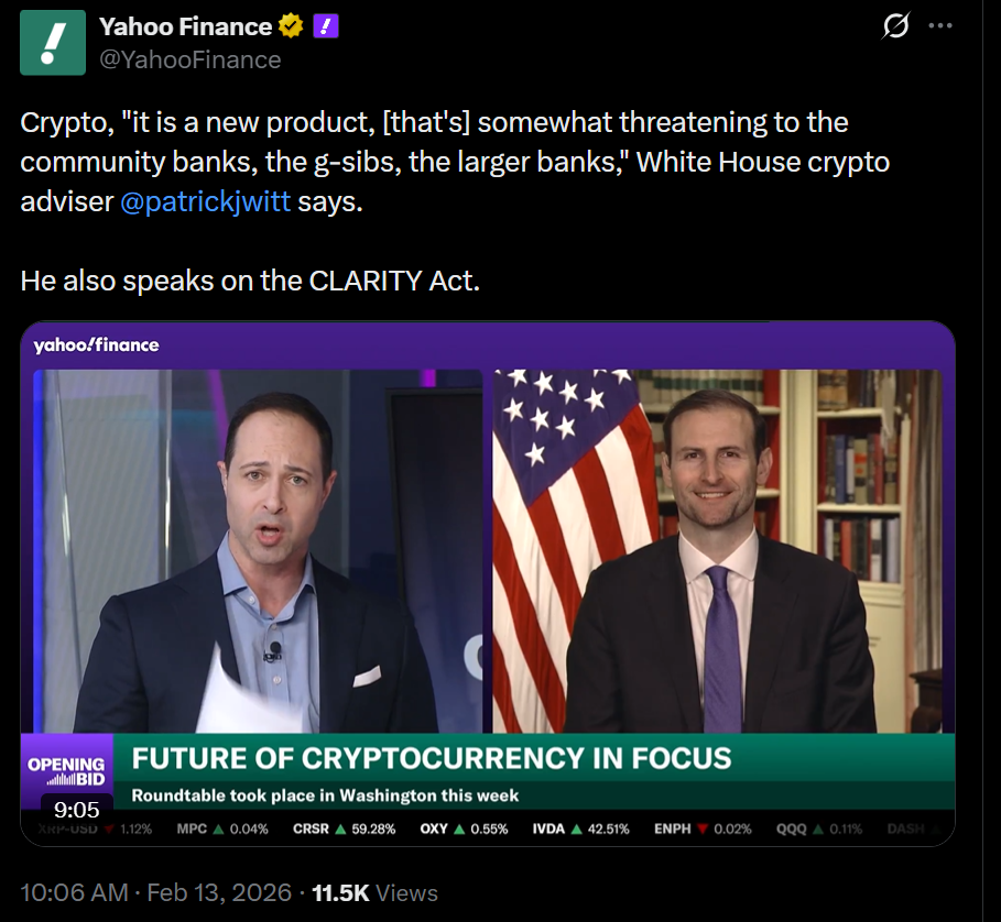 На тлі тупикової ситуації щодо майбутнього Закону CLARITY адміністрація Трампа скликала зустріч із представниками галузі на початку цього місяця, щоб вийти з глухого кута та зібрати відгуки щодо невиконаних положень, пов’язаних із наглядом за DeFi та структурою ринку.