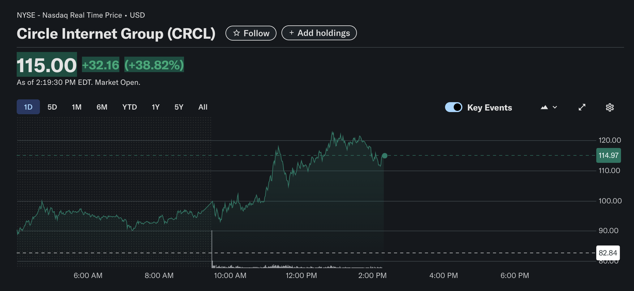 Коло почало торгувати на NYSE 5 червня під The Ticker CRCL, після IPO, який зібрав 1,05 мільярда доларів.