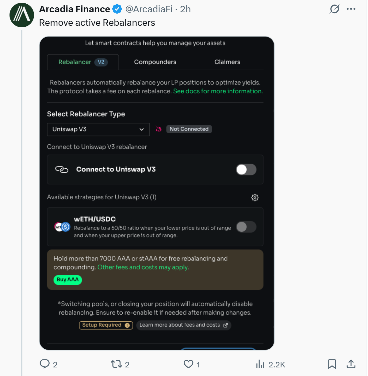 Вони попросили користувачів відкликати будь -які дозволи, надані ребалансуючим на платформі Arcadia, щоб мінімізувати подальший ризик.