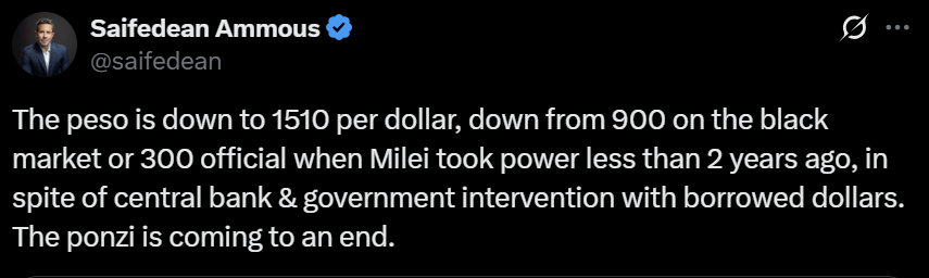 У п’ятницю боєприпаси подвоїлися, вказуючи на крах песо з моменту вступу Майлі.