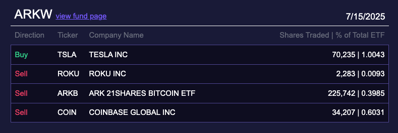 Окрім акцій ARKB, фонд ARKW ARKW також продав 34 207 акцій Coinbase (COIN) у вівторок, що генерував 13,3 мільйона доларів.