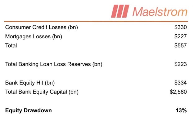 Його вільна модель припускає, що 20% скорочення 72 мільйонів «працівників знань» у США може спричинити близько 557 мільярдів доларів споживчих кредитів та іпотечних втрат, що становить 13% списання капіталу комерційних банків США.