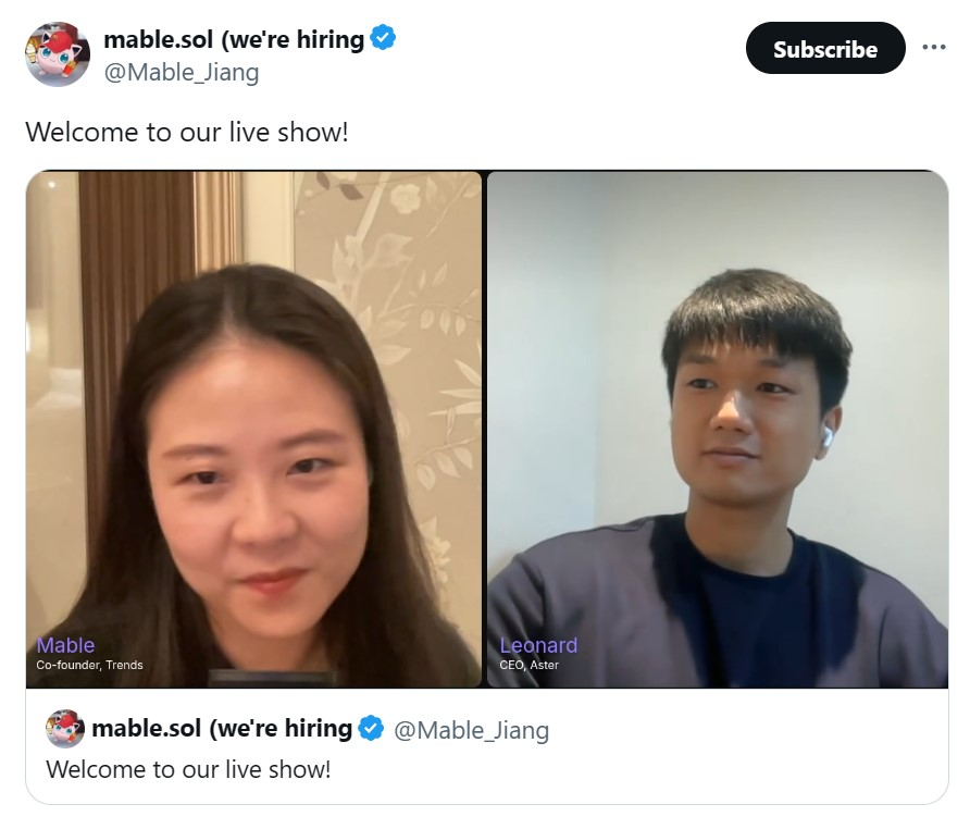 За його словами, команда роздумує, чи випуск 4% постачання створить тиск на продаж на токені. Він додав, що їм довелося розглянути не лише учасників, а й існуючих власників Aster.