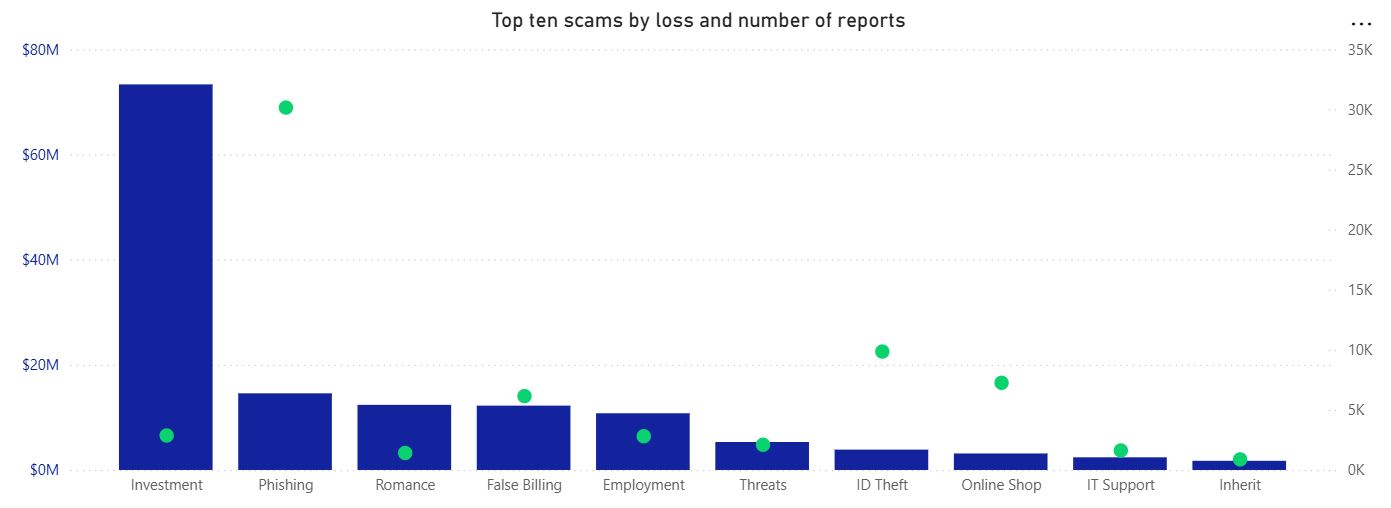 Інвестиційні афери залишаються провідним типом афери, що впливають на австралійців, до цього року, повідомляє національний анти-скамський центр, повідомляє понад 73 мільйони доларів США.