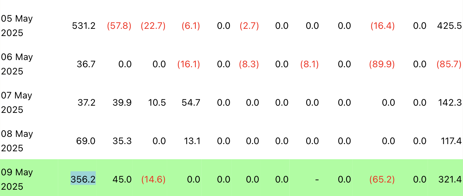 Spot Blackrock Bitcoin ETF (IBIT) обмежив торговий тиждень ще одним днем припливу, набравши 356,2 мільйона доларів 9 травня. Фонд зараз продовжив свою припливу на 19 днів поспіль – найдовший пробіг припливу в цьому році.