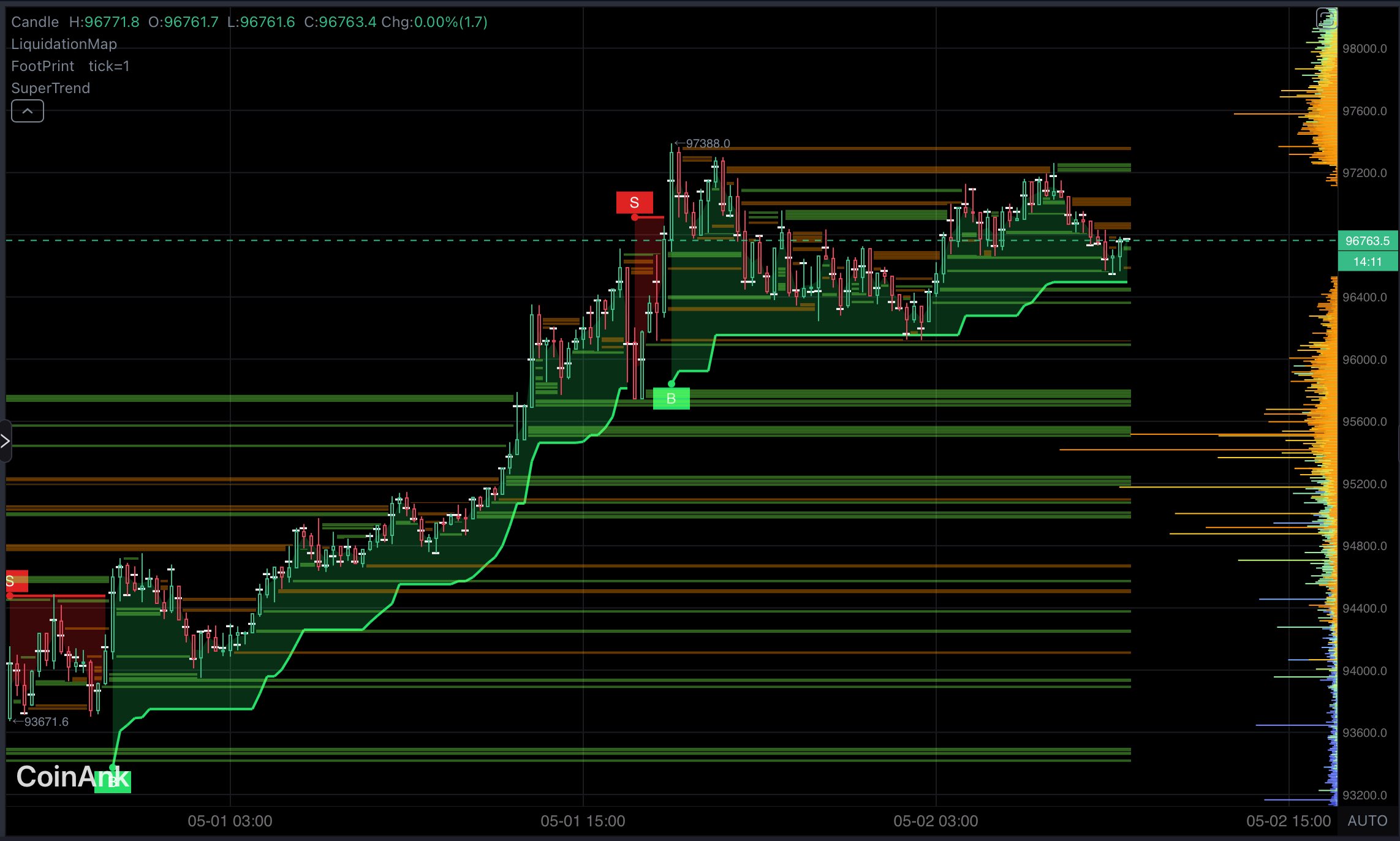 Аналітик зазначає, що індикатор Bitcoin Supertrend надрукував сигнал покупки, коли ціни входять у 94 000 доларів, а потім сигнал продажу в 97 300 доларів. Однак, коли ринкові ціни все ще перевищують 94 000 доларів, структура ринку біткойна та індикатор Supertrend залишаються бичачими.