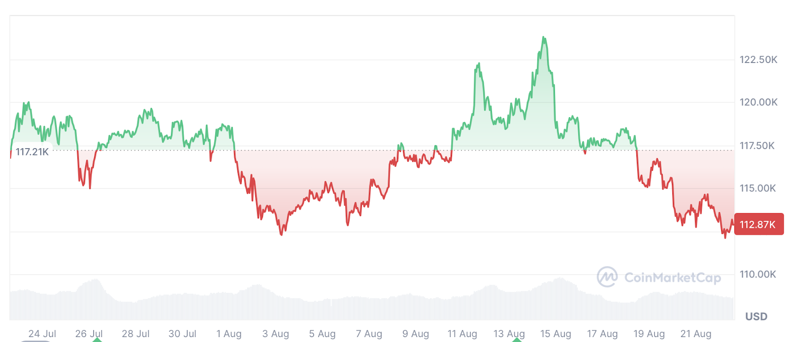 Однак трохи більше тижня після того, як біткойн досяг нових максимумів за весь час у розмірі 124,128 доларів 14 серпня.