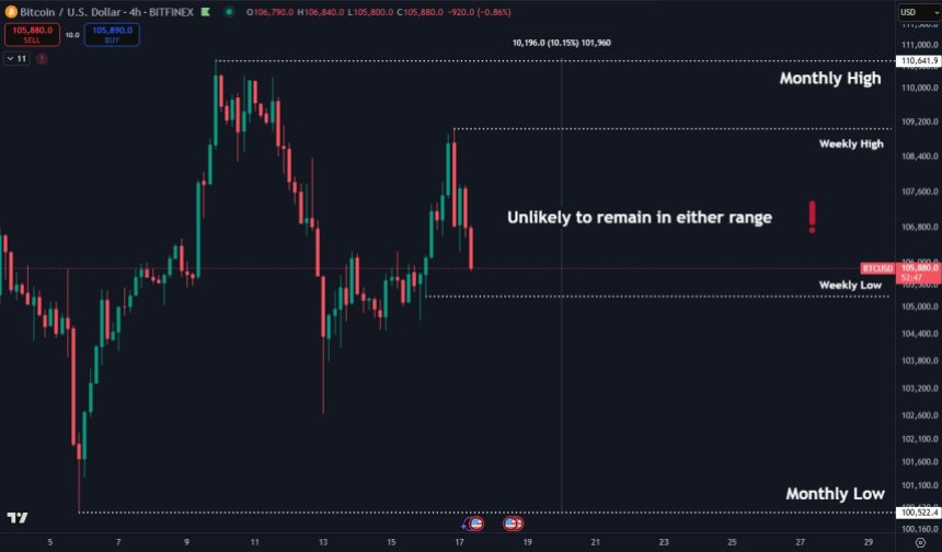 Тим не менш, торговець вважає, що BTC “налаштовує на великий крок”, оскільки криптовалюта продовжує проводити щомісячний діапазон від 100 000 до 110 000 доларів.
