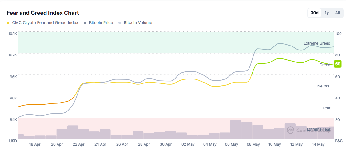 Незважаючи на напад на третій за величиною у світі обмін криптовалютами, настрої інвестора залишаються оптимістичними, індекс Fear & Greed залишається міцно в зоні «жадібності» вище 69, згідно з даними CoinmarketCap.