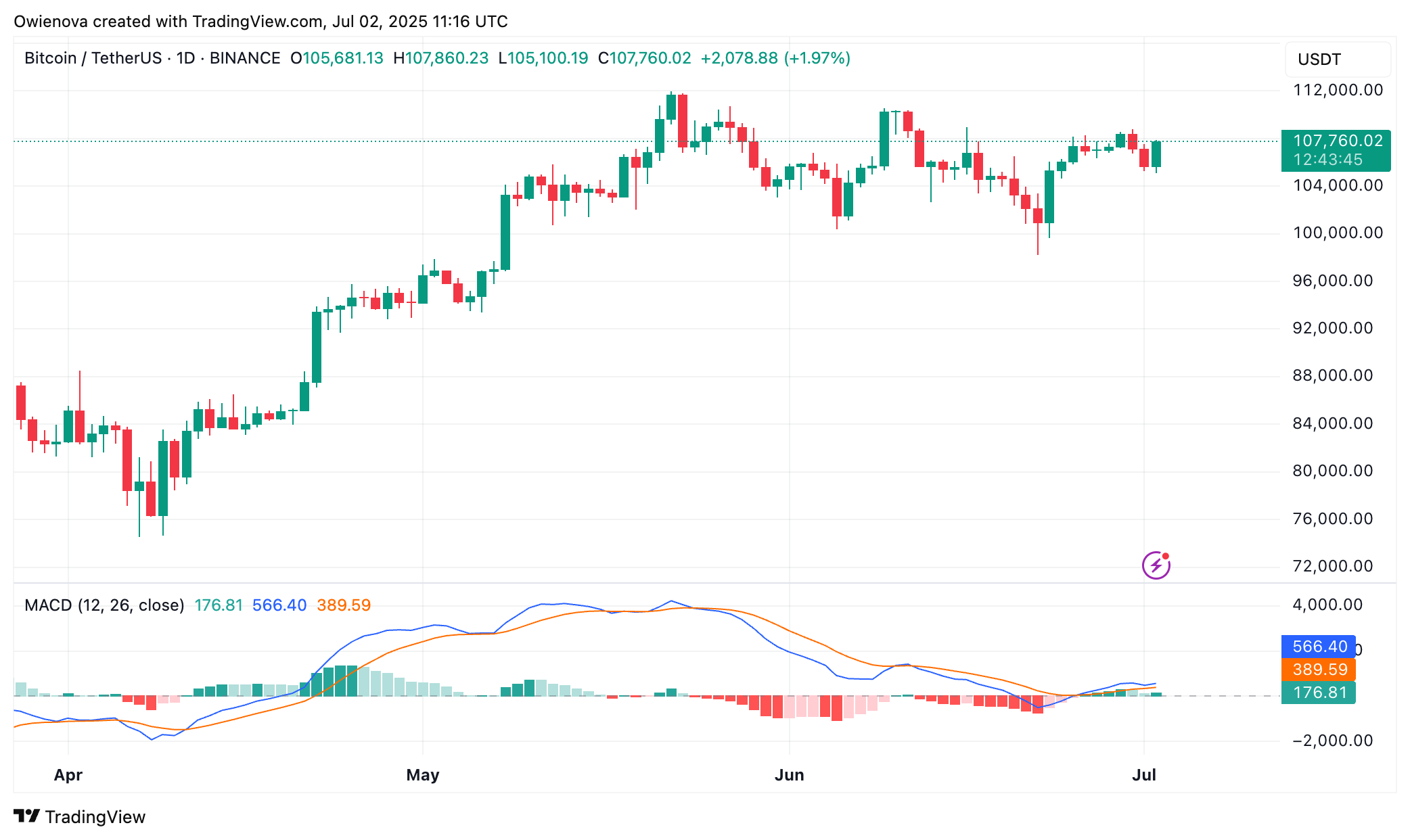 BTC Trading на рівні 107 760 доларів на графіку 1D |Джерело: BTCUSDT на TradingView.com