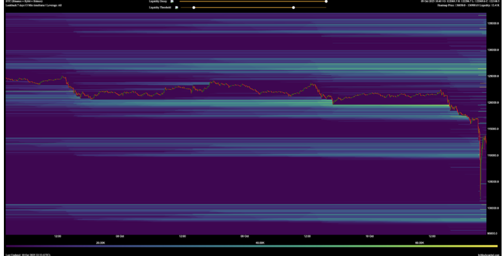 Салмонд вказав на дані про ліквідаційну теплову карту з Hyblock, де показано, що “буквально вся недосвідчена довга ліквідність поглинається, з ліквідаційним кластером від 102 000 до 97 000 доларів”.