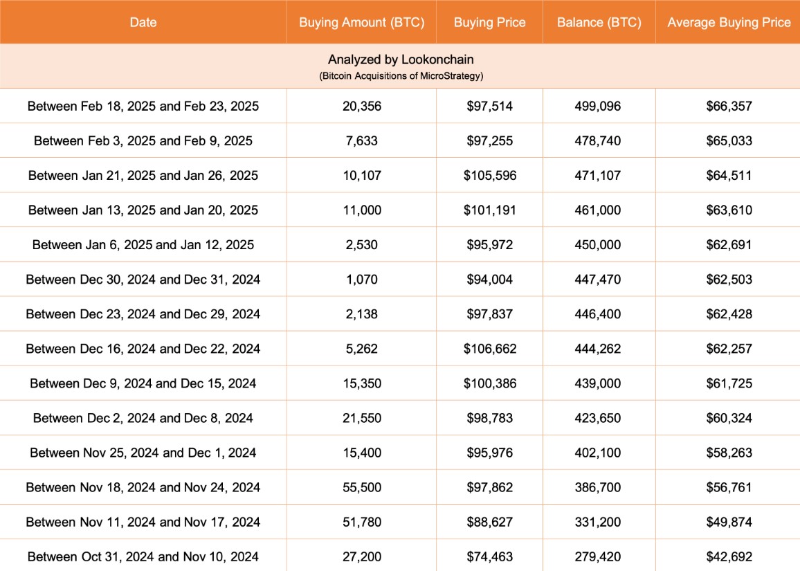 Незважаючи на спад на ринку, стратегія Майкла Сейлора залишалася попереду на своїх покупках BTC. Компанія проводила 499 096 BTC, придбаних в середньому 66 423 доларів за токен. Загалом, стратегія витратила 33,1 мільярда доларів на покупки біткойна, тоді як її акції зараз оцінюються в 41,2 мільярда доларів – 24% нереалізованого вигоди навіть на тлі виправлення.