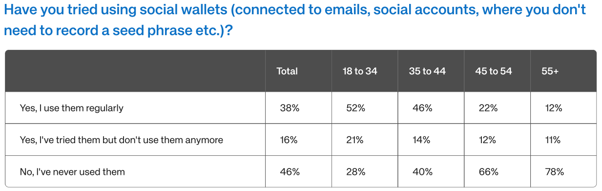 Соціальні гаманці, які підключені до електронної пошти користувача чи іншого соціального облікового запису і не потребують насіннєвої фрази, “трансформуються на борту”, і знаходяться на “передньому плані інновацій UX, швидко застосовуючи такі технології, як Passkey Signers та абстракція газу”, за словами Дерека Рейна, головного технічного директора в Reown. Він додав: