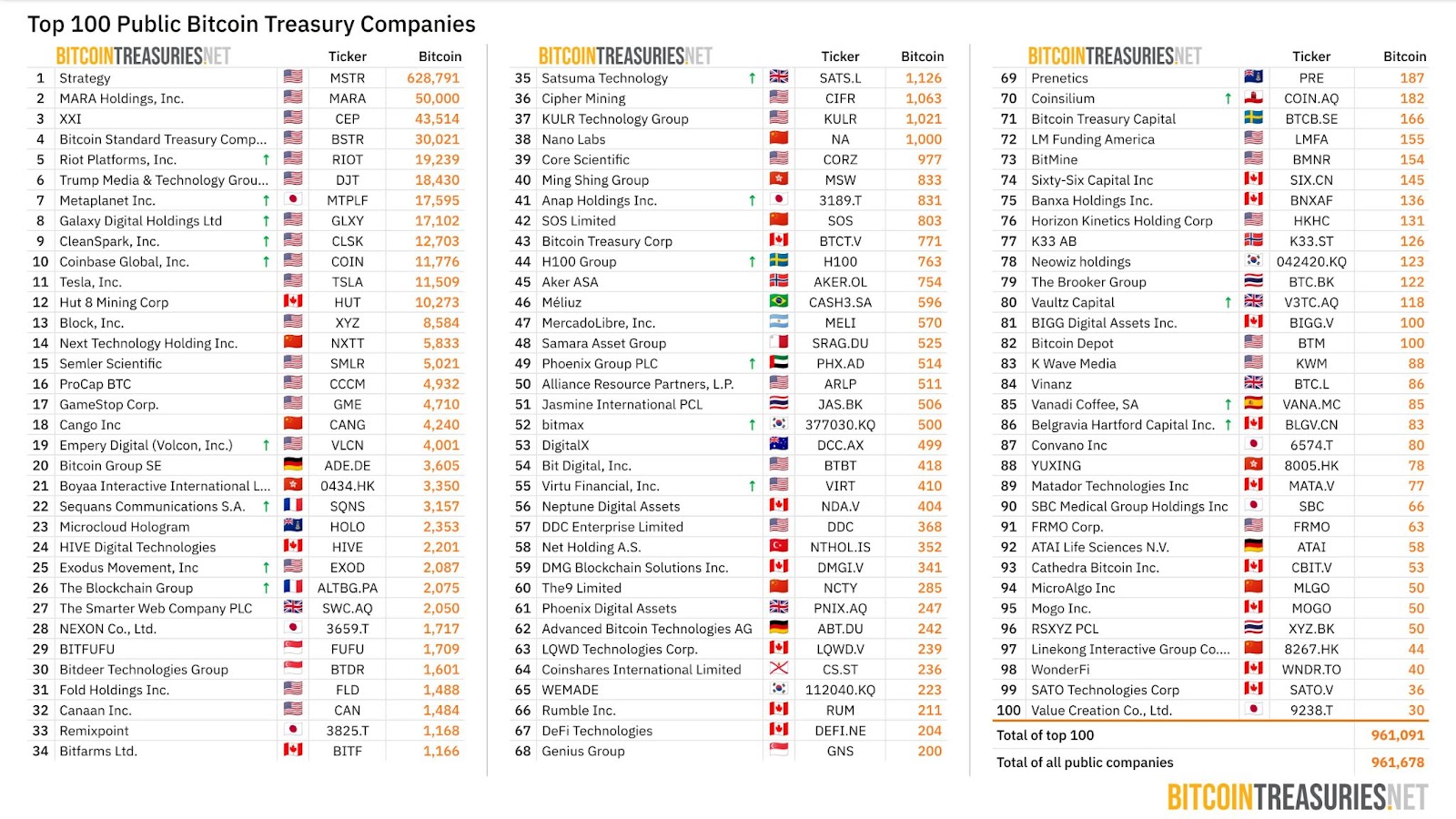 Сьогодні сотні державних компаній тримають біткойн на своїх балансах. Сюди входять криптовалютний бізнес, такі як шахтарі біткойна, віддані казначейські фірми, такі як двадцять один капітал та більш традиційні підприємства, які диверсифікують свої казначейські стратегії за допомогою накопичення біткойна.