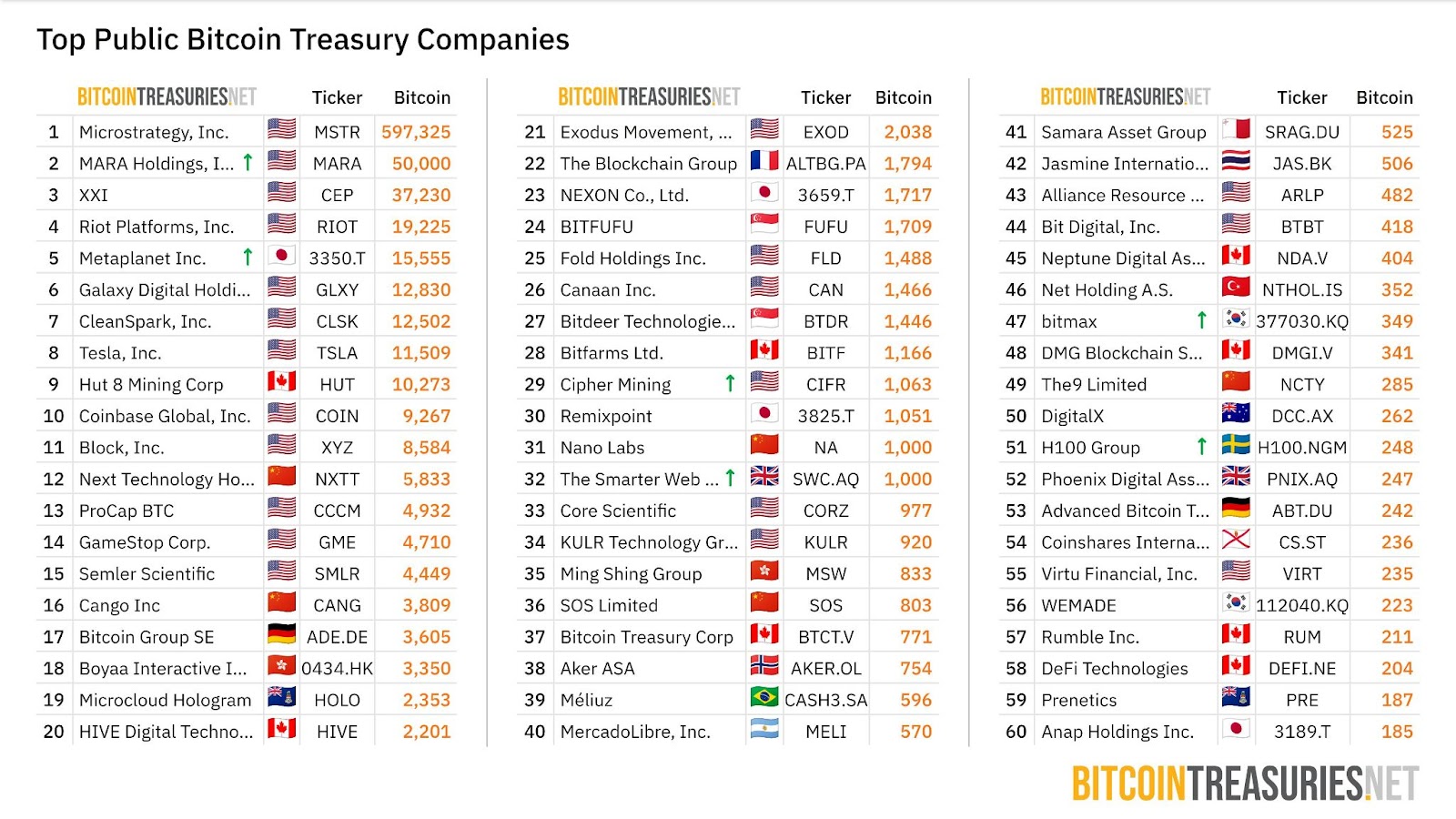 Тільки за останній місяць щонайменше 21 суб’єкти додав BTC до своїх балансів, згідно з даними галузі. Найбільший корпоративний власник, стратегія (MSTR), накопичив 597 323 BTC.