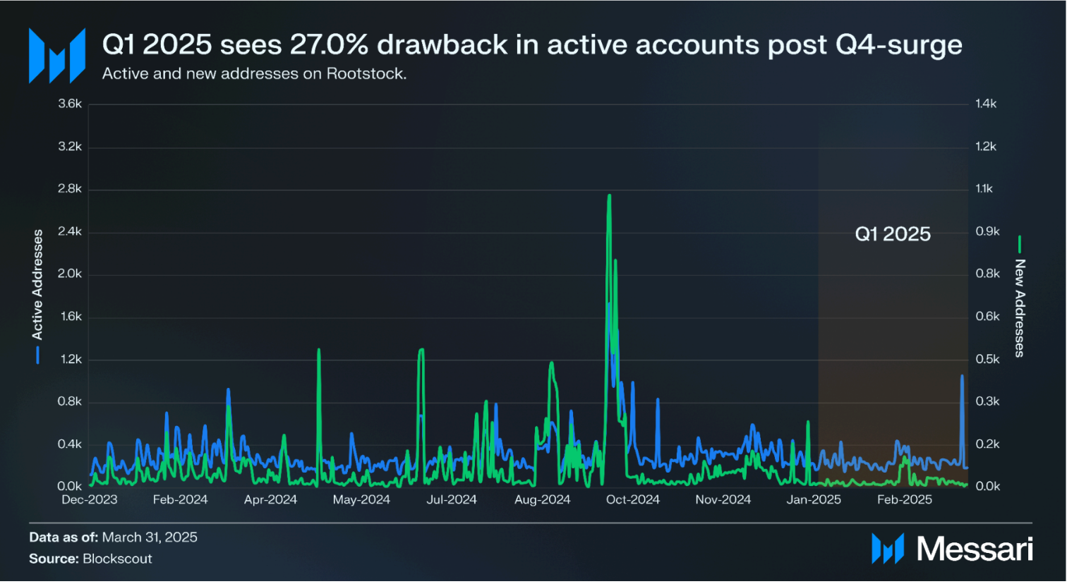Smart контрактна платформа Prootstock, будинок децентралізованих фінансів (Defi) на біткойн, побачив різке збільшення мережевої безпеки та залучення гірничодів у першому кварталі 2025 року, навіть коли активність охолоджена.