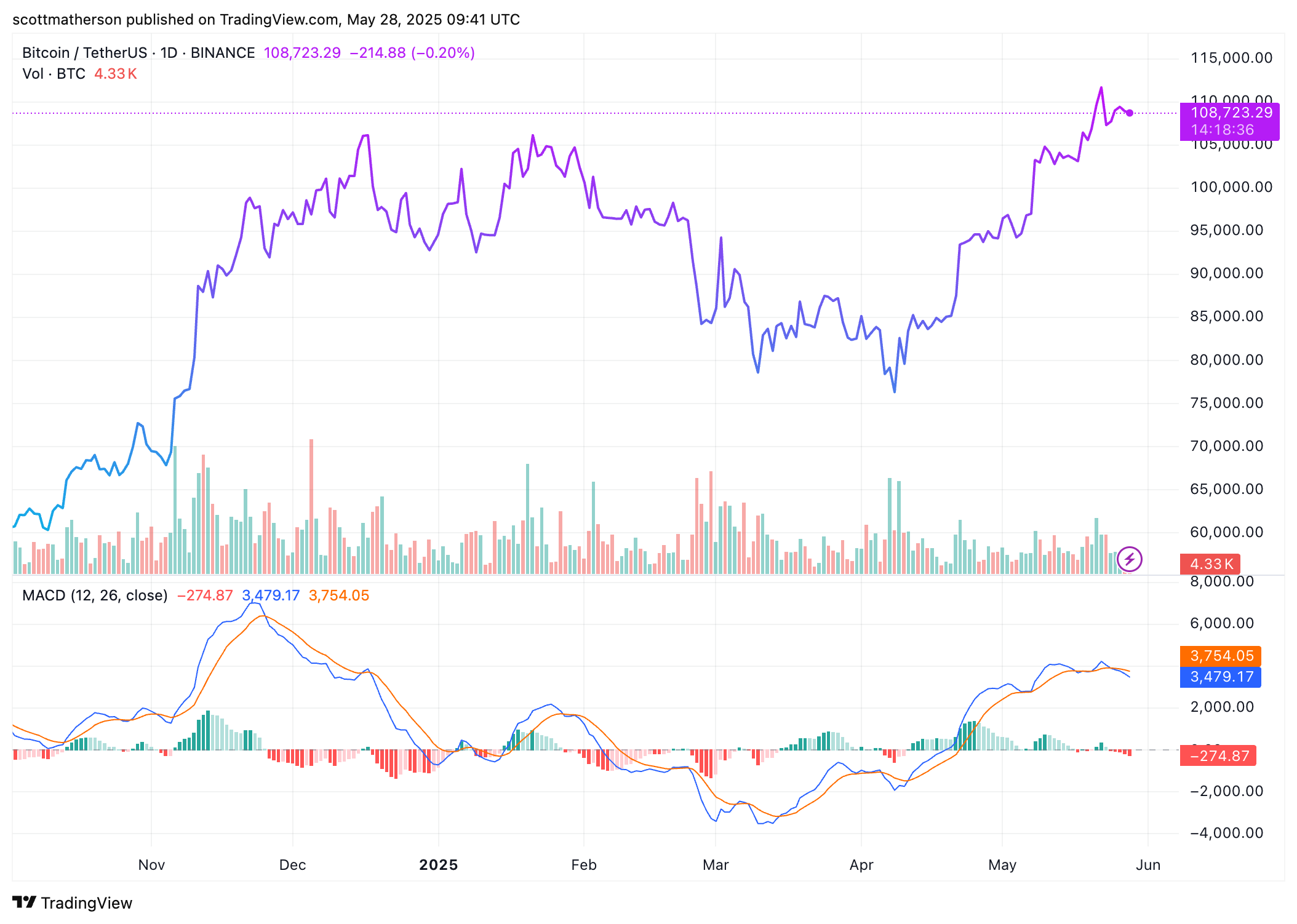 Біткойн витратив останні п’ять днів, торгуючи у відносно вузькому діапазоні від 106,229 до 111 807 доларів США, після останнього високого рівня за весь час у 111 814 доларів. Незважаючи на збільшення тиску продажу шахтарів після найвищого часу, ціна біткойна вдалося утримувати понад 108 000 доларів США, при цьому дані про ланцюжки показують, що Bitcoin Diamond Hands поглинає весь тиск продажу.