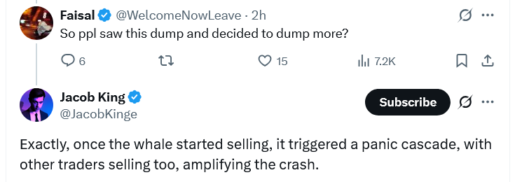 Але коли кит почав закривати довго, ринок зрозумів торгову стратегію кита – спонукаючи торговців змінити свої позиції за допомогою каскаду замовлень на продаж, MLM зазначив на Telegram.