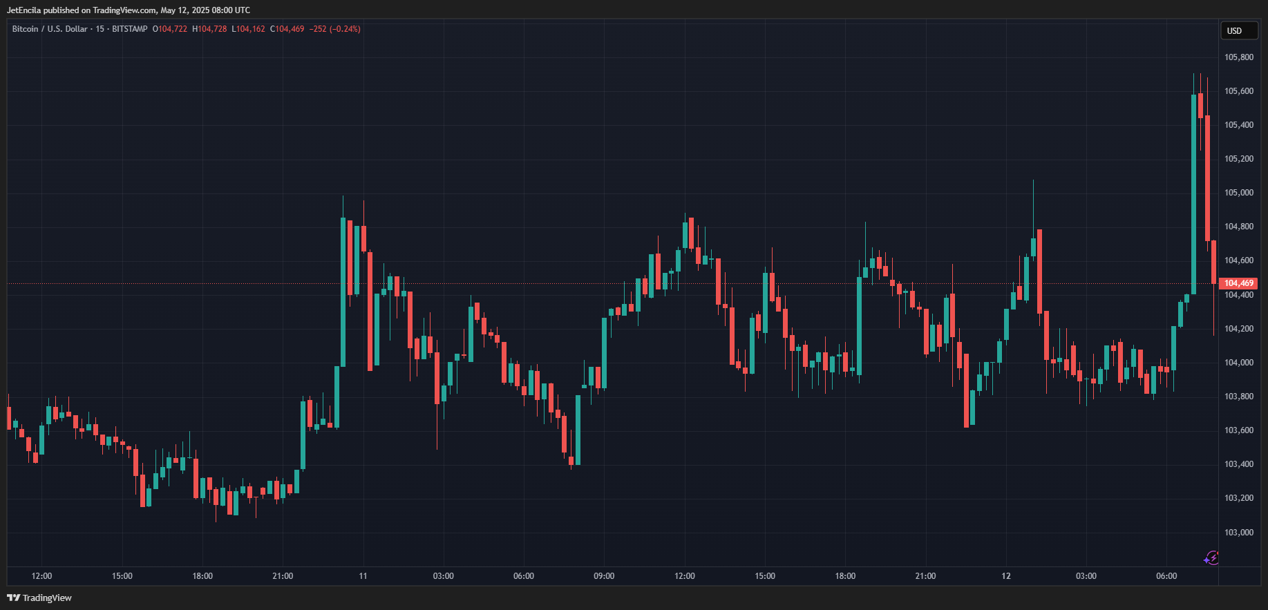 Зараз BTC торгується на рівні 104 469 доларів. Діаграма: TradingView