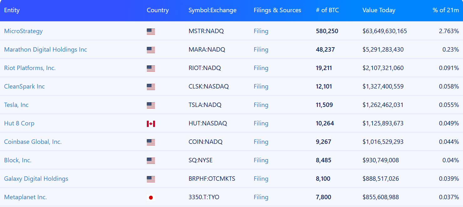 Metaplanet-це найбільший у світі, а 10-й за величиною корпоративний власник Bitcoin, що має понад 7 800 BTC на суму 855 мільйонів доларів, що становить 0,037% від загальної пропозиції, показують дані Bitbo.
