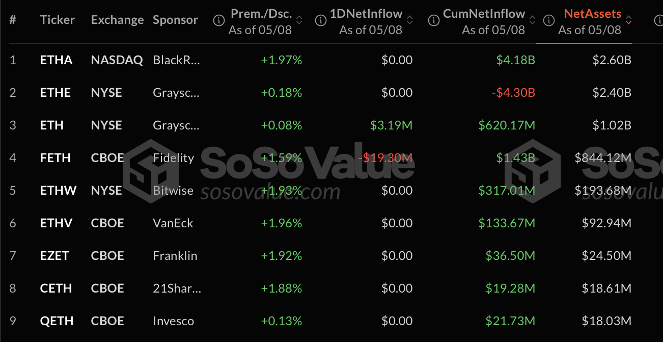 Інші емітенти ETF криптовалюта поділяють цю точку зору.15 лютого Нью -Йоркська фондова біржа запропонувала зміну правил для запровадження послуг зі ставленням для ETF -ETF -ETF Space. У квітні SEC затримала рішення щодо того, щоб схвалити чи не схвалювати зміну правила. Згідно з Sosovalue, BlackRock та Greyscale стоять за найбільшими ефірними ETF за рахунок ринкової капіталізації.