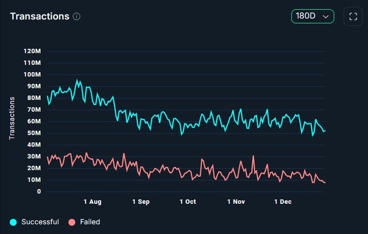 Кілька найбільших блокчейн-мереж обробляли більше транзакцій у грудні, незважаючи на те, що комісія, яку сплачували користувачі, впала, що свідчить про те, що нещодавні оновлення масштабування збільшують пропускну здатність і пом’якшують конкуренцію за блоковий простір, згідно зі зібраними Нансеном даними.