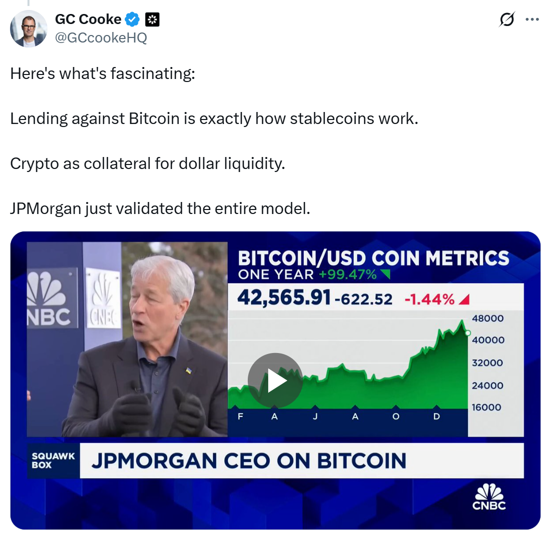 Кредитування залишається невеликим шматочком ринку криптовалют, але привертає зростаючу увагу, оскільки інституційні гравці перевозять простір. Минулого тижня повідомлення показали, що JPMorgan Chase розглядає криптовалютні позики, плануючи позичити безпосередньо проти криптовалют, таких як Bitcoin (BTC) та ETHER (ETH).