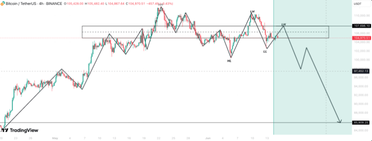 Аналітик криптовалюти прогнозує, що існує можливість, що тенденція до зростання може продовжуватися, якщо ціна біткойна зможе зламати понад 107 000 доларів і підтримувати її. В іншому випадку, як очікується, ціна біткойна знизиться на більш ніж на 15%, що підштовхує її нижче 90 000 доларів США і до 85 000 доларів до встановлення дна.