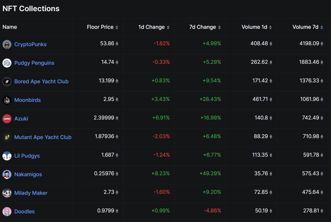 Cryptopunks зберігає своє місце як найкращу колекцію NFT за допомогою ринкової капіталізації. Дані про ціну NFT показують, що колекція коштує щонайменше 526 900 ETH (близько 2,4 мільярда доларів).