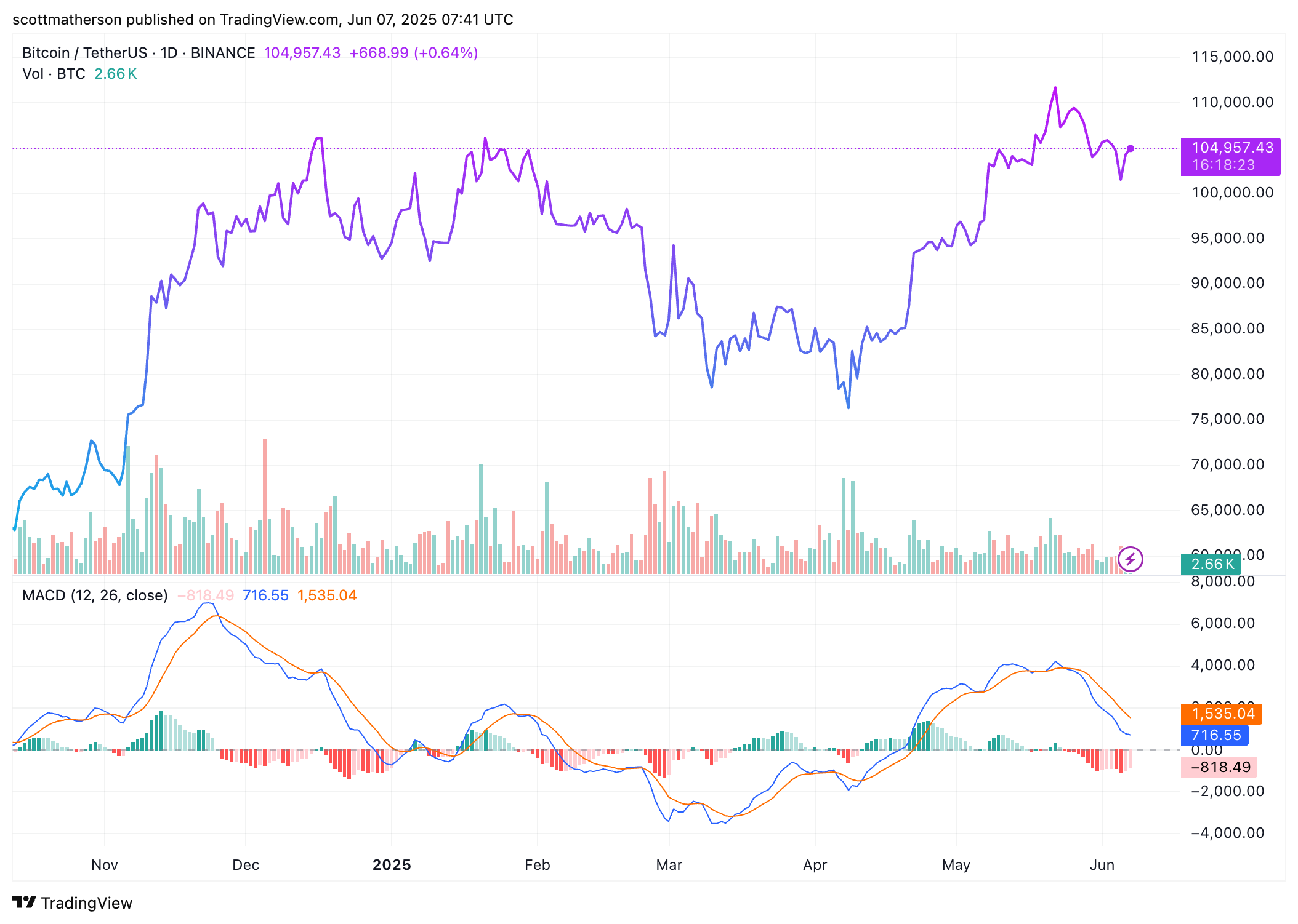 На момент написання ціна біткойна торгується близько 105 000 доларів. Згідно з даними CoinmarketCap за останні 24 години на 2%.