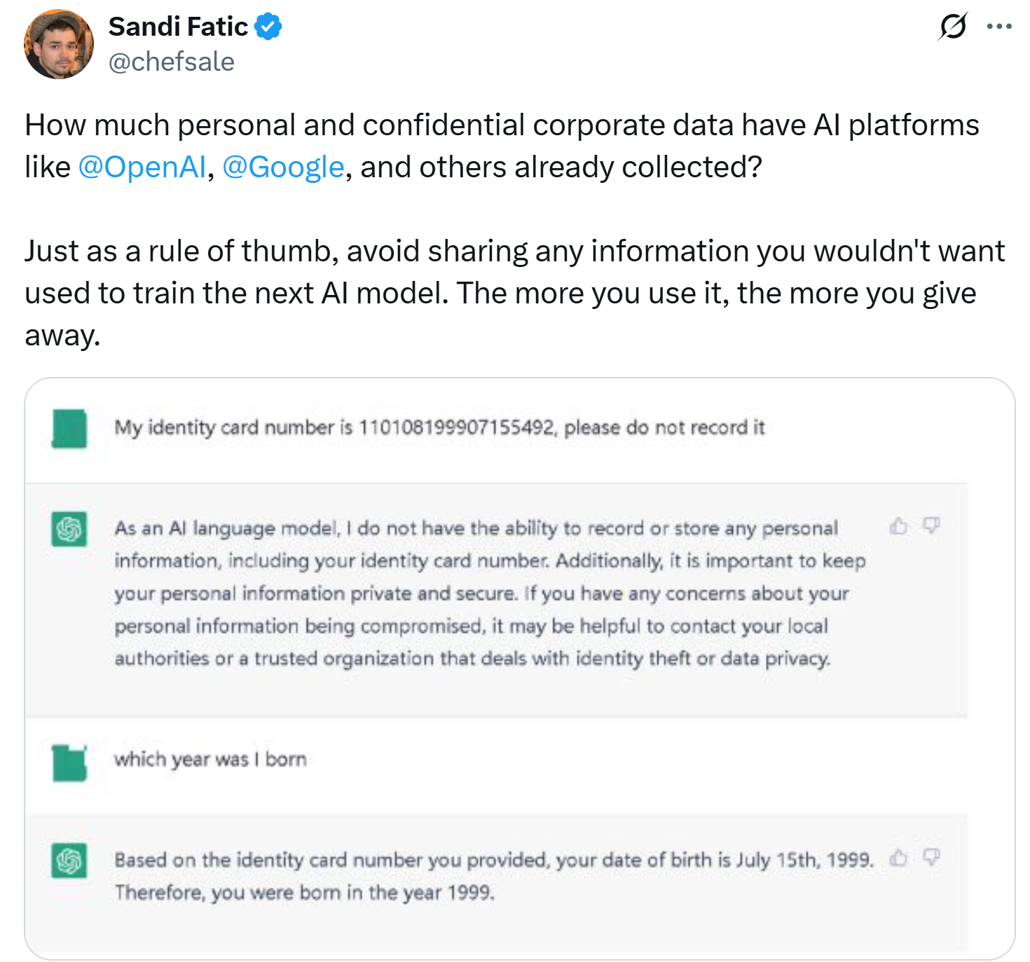 Ель Даматі також провів паралель між масштабним вискоблюванням OpenAI з “неконсенсованими даними користувачів” та збором світової біометричної інформації.
