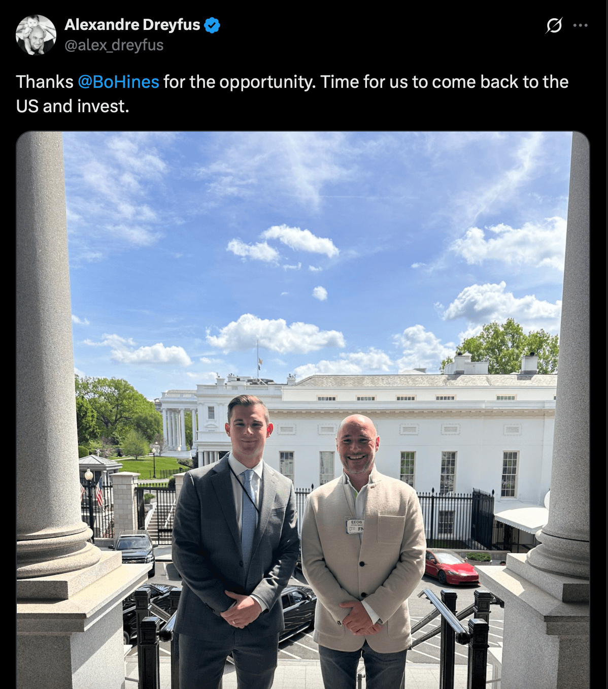 Зустріч з федеральним агентством відбулася 22 квітня – того ж дня генеральний директор Chiliz Олександр Дрейфус поділився фотографією з Бо Хайнсом, виконавчим директором ради радників з питань цифрових активів Трампа, запропонувавши другу зустріч з чиновниками Білого дому.