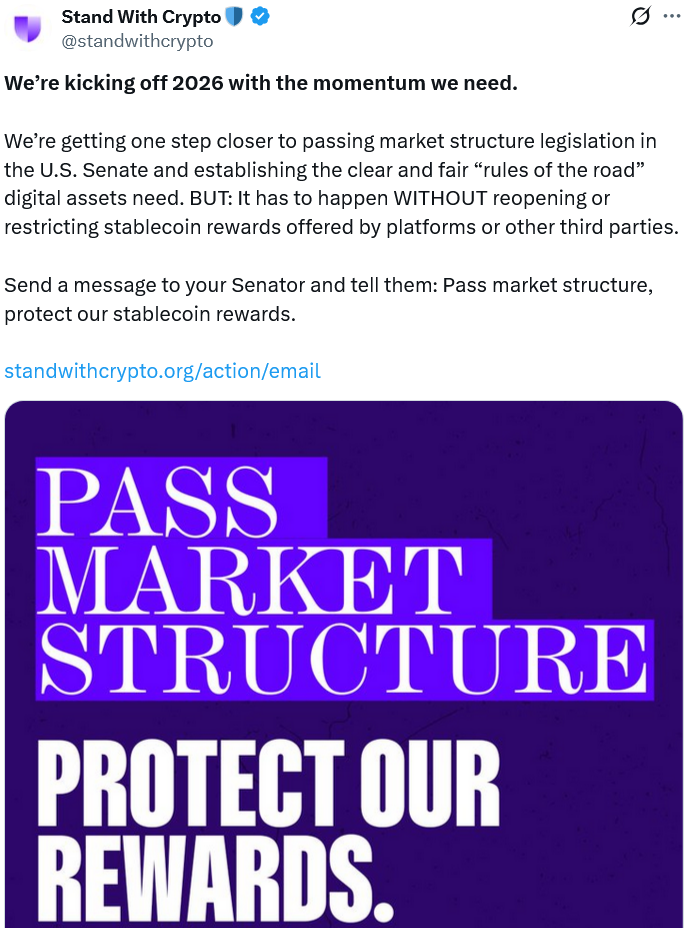 Криптовалютна спільнота також активно бореться, і Stand With cryptocurrency стверджує, що її прихильники надіслали понад 135 000 електронних листів сенаторам, щоб захистити винагороди за стейблкойни.