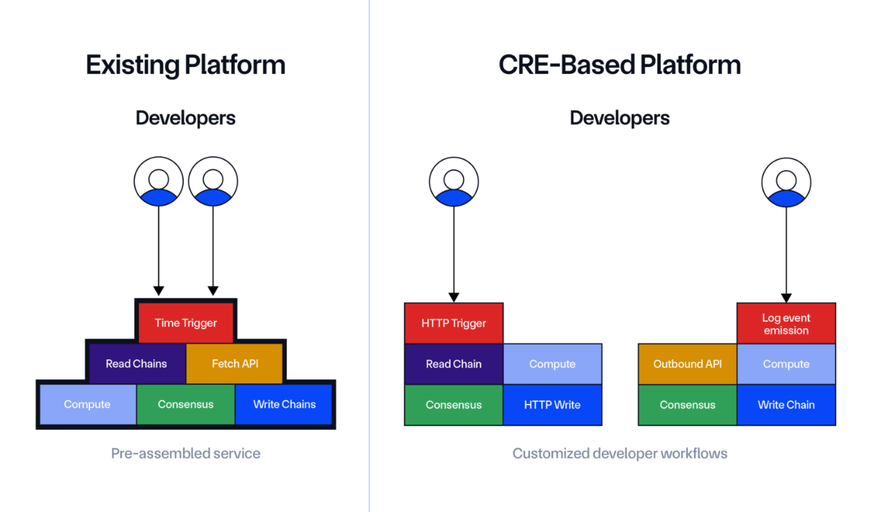 ChainLink представив CRE в кінці жовтня 2024 року, описуючи його як спосіб “розгортання коду безпосередньо на платформі ланцюгової лінії для створення та складання можливостей, видалення необхідності додати специфічний для ChainLink код до своїх контрактів на Onchain”. Як повідомляв Cointelegraph на той час, CRE також дозволяє підключити традиційну фінансову архітектуру, платіжні системи та застарілі установи з протоколами blockchain та розумними контрактами.