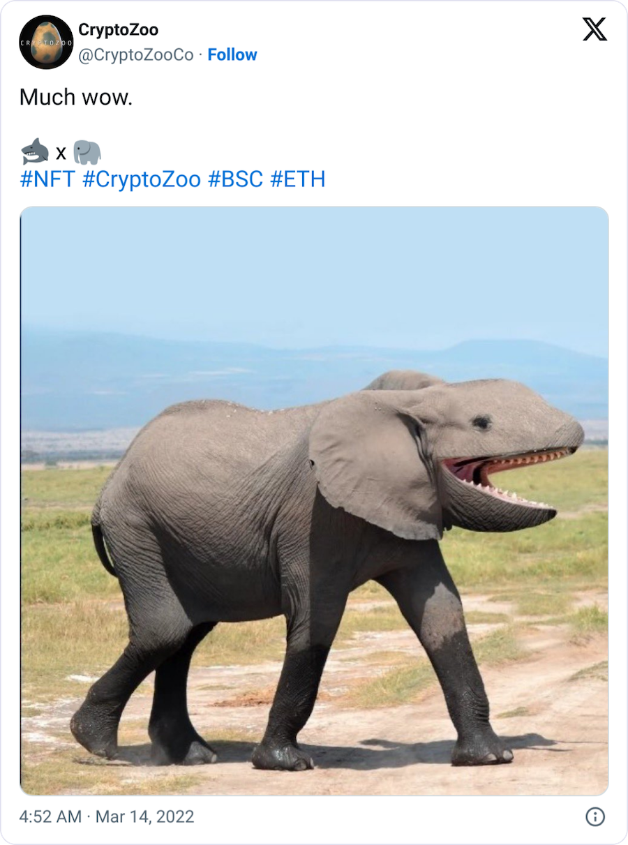 Клас стверджував, що Cryptozoo NFT є варіантом контракту, коли вони почали як “яйця”, що “висиджує” на тварин, які потім можуть бути розведені з іншими, щоб створити гібридних тварин, якими можна торгувати.